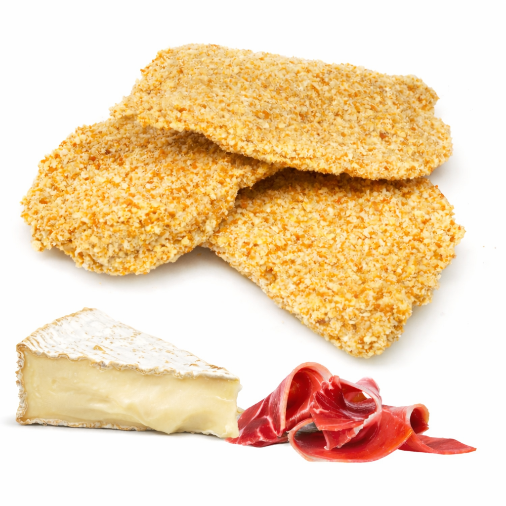 | Ingredients | Llom de porc, formatge brie (llet pasteuritzada de vaca, clorur càlcic, quall, ferments làctics i sal.), pernil curat(pernil i sal) pa ratllat ( Farina de blat, llevadura i sal) encolant ( Midó de blat; sal; espessant (E-415); colorant (E-100)) |