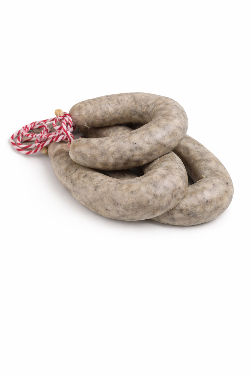 Butifarra de perol de elaboración propia. Elaborada con carne de caldera que se obtiene de hervir la cabeza, tocino y otras carnes del cerdo. Su textura melosa y su intenso sabor son sus principales características.