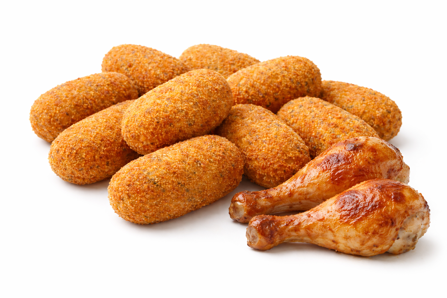 Nuestras croquetas de pollo frito. Solo hay que calentarlas y ya están listas.
