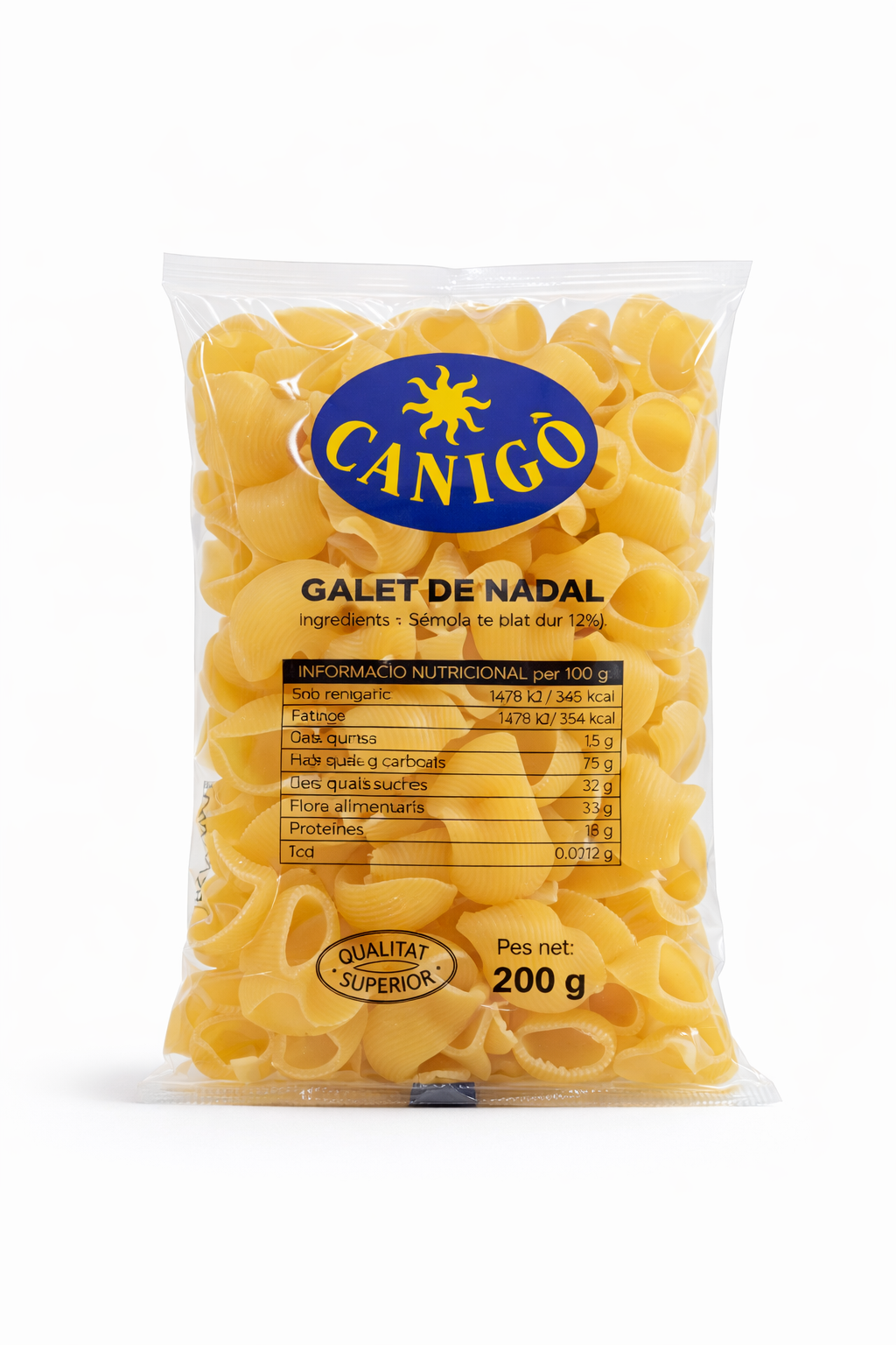 El galet de Nadal Canigó és la pasta tradicional de les escudelles i sopes festives de la cuina catalana. La seva mida gran i la seva forma característica permeten preparar plats emblemàtics com l’escudella de Nadal, aportant textura i absorbint intensament el sabor del brou.