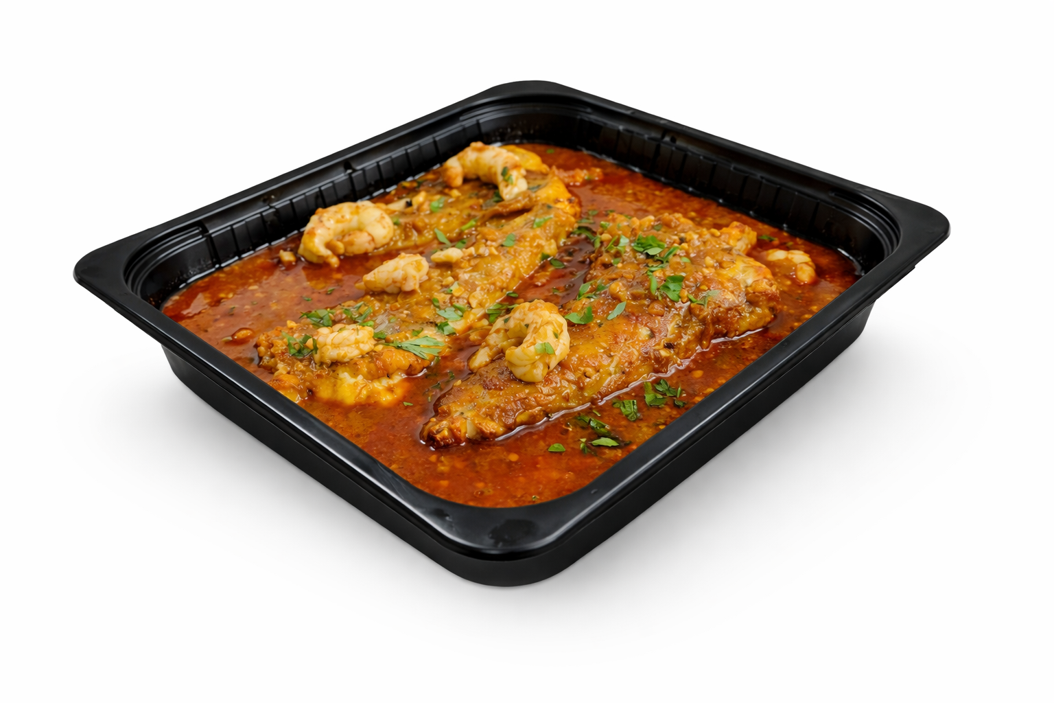 | Ingredientes | Rape, caldo de pescado (agua, pescado de roca, rape, cangrejo, verduras, aceite de oliva, vino blanco, sal, especias), langostinos, cebolla, tomate, harina, ajo, aceite de oliva, especias, sal, azúcar. |