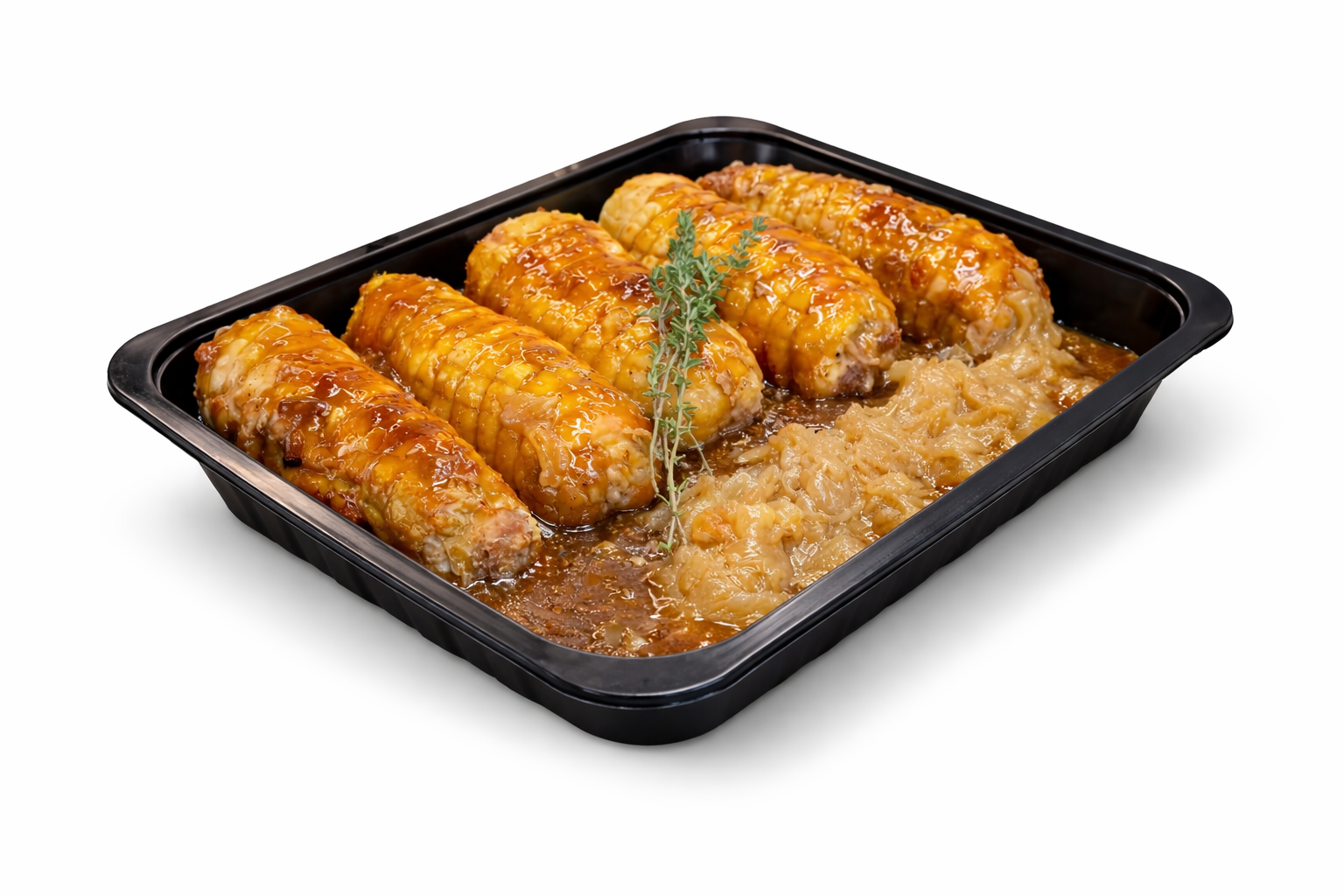 Los redonditos de pollo son cuartos enteros de pierna de pollo completamente deshuesados y rellenados por nosotros.
